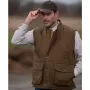 O colete Brampton Tweed é feito de uma mistura de lã e fibras mistas e inclui um forro de poliéster acolchoado .