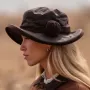 O gorro Rose Wax para mulheres é um acessório de cabeça charmoso, com exterior encerado 100% algodão, forro 100% algodão e acabamento em mistura de lã.
